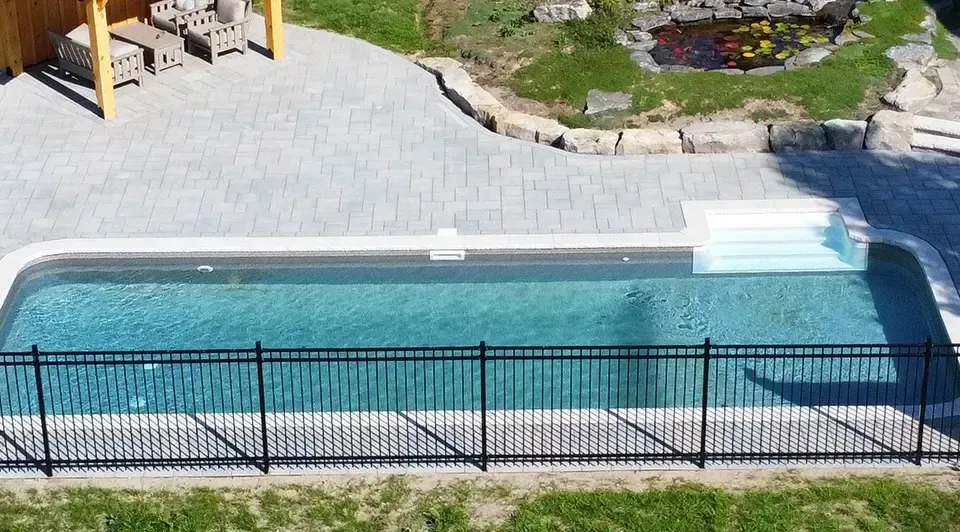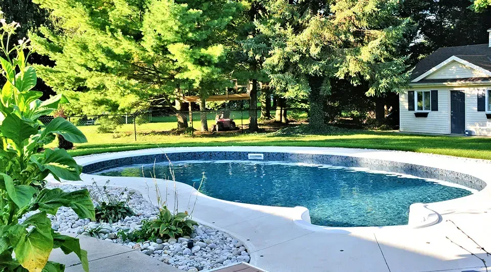 Vinyl pools are highly customizable and are built with a liner system. Fiberglass pools use a pre-manufactured shell and are known for lower maintenance and quicker installation in many cases. Biodesign pools are designed to create a more natural-looking, resort-style environment with a different visual feel than a traditional pool.